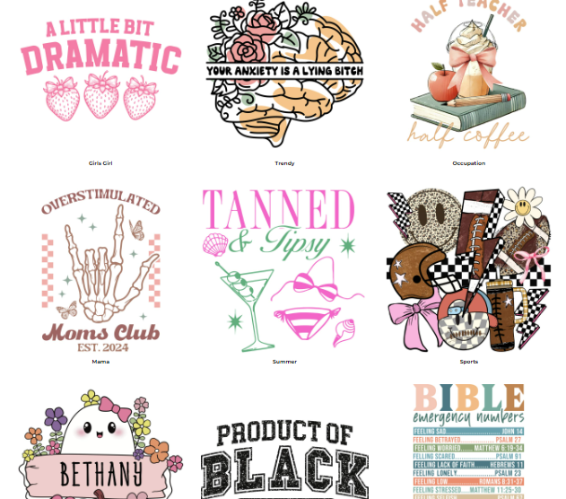 Browse from 1000s of trendy stock and customizable designs! If you've seen it on TikTok we probably have it on our shop! If not reach out, we will see what we can do!