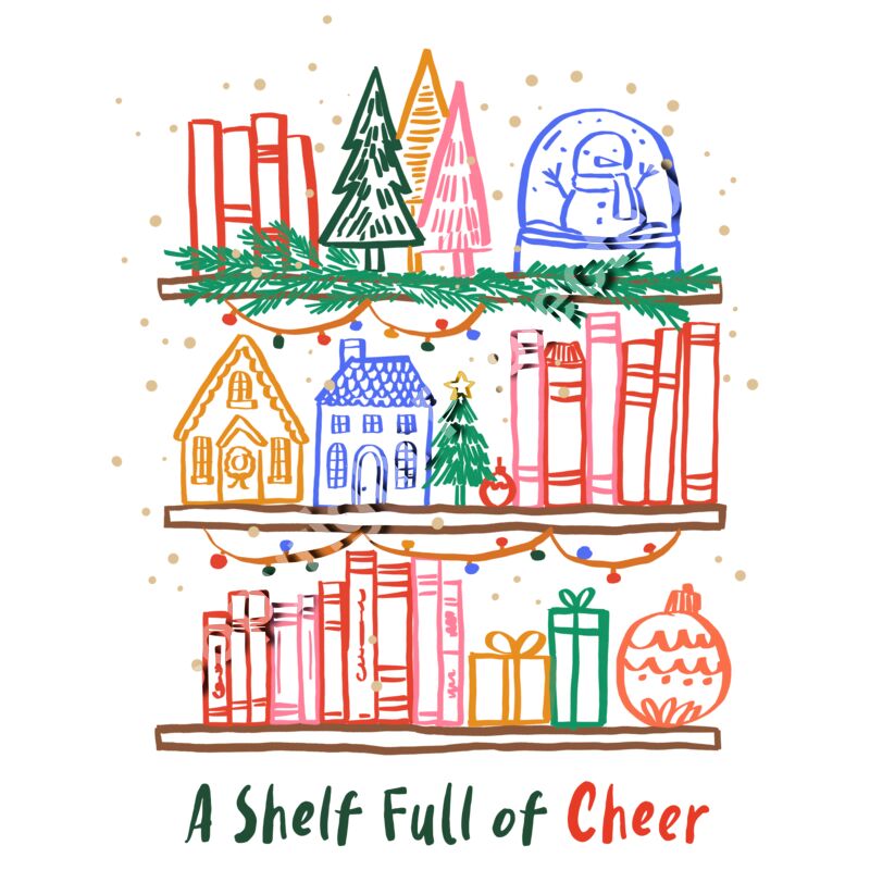 Celebrate the magic of the season with A Shelf Full of Cheer—a cozy, bookish holiday design featuring stacked books, charming village houses, Christmas trees, and twinkling lights. This festive bookshelf scene is perfect for readers who love to deck their shelves as much as their halls. With its warm colors, storybook details, and whimsical holiday touches, it’s the perfect print for book lovers, cozy readers, and Christmas enthusiasts alike. Ideal for sweaters, tees, or totes, this design adds a little literary sparkle to your holiday lineup.